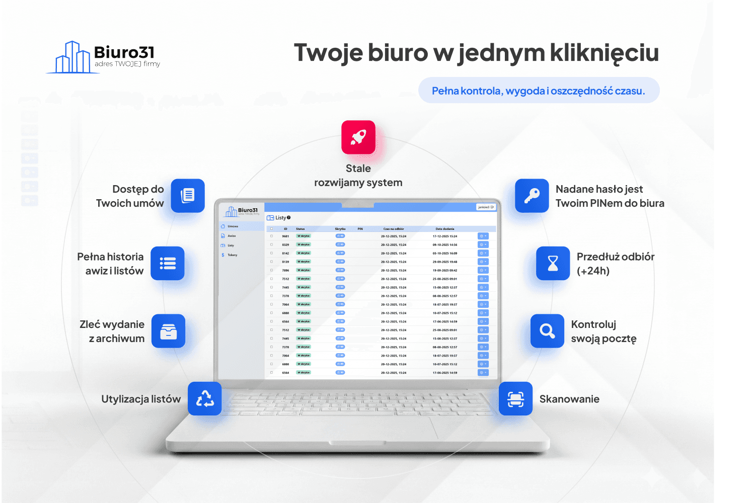Projekt zrealizował główny cel biznesowy: odciążył dział obsługi klienta (mniej pytań o podstawy) i przyspieszył proces decyzyjny użytkowników, prezentując ofertę "Biuro31" jako profesjonalną, nowoczesną i bezpieczną.